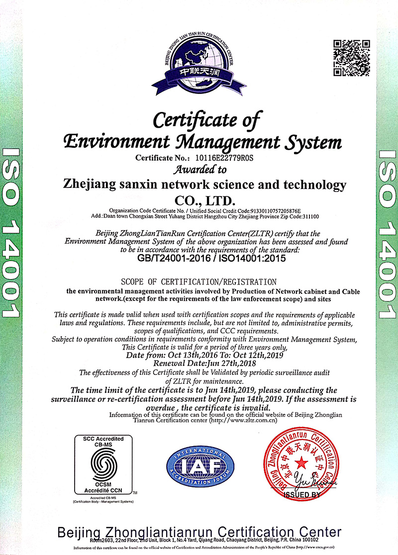 環境管理(lǐ)體(tǐ)系認證書(shū)