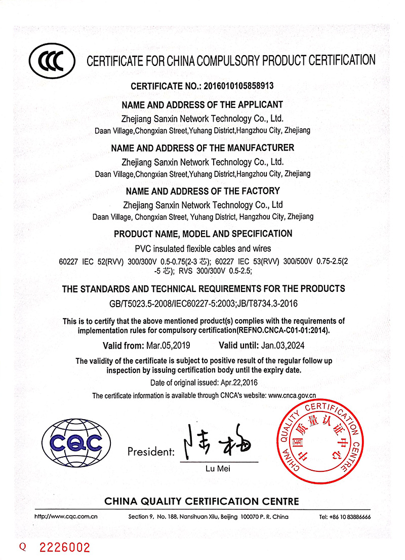 絕緣電(diàn)纜電(diàn)線國(guó)标認證-英文(wén)版